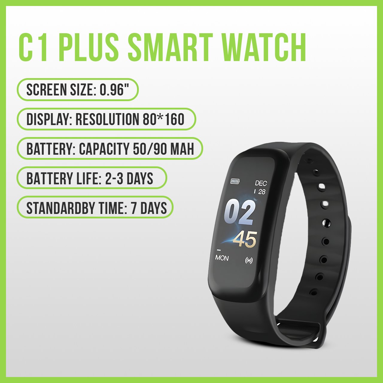 1, screen: 0.96″ display, resolution 80*160